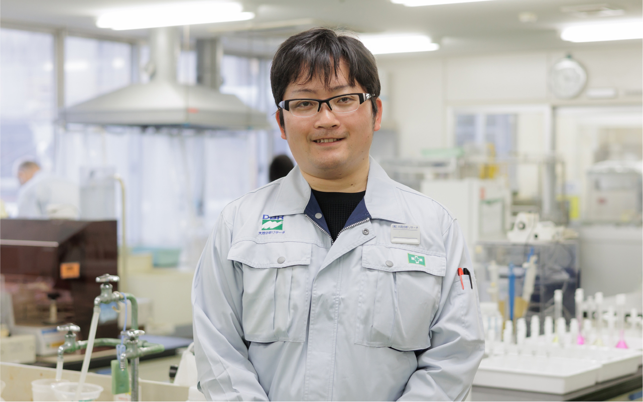 大学で学んだ環境科学に関心があり、関係する企業の説明会などに参加していました。その中で当社に見学に来た際に、主なクライアントである大同特殊鋼株式会社の工場で大型の機械や車両が動く姿を見て、その仕事のスケールの大きさに魅了されました。また先輩方の雰囲気も自分に合うように感じて、ここでいろいろな環境測定業務に携わりたいと思い入社を決めました。入社後の最初の1年は基礎的な分析を覚えるために室内で水の成分の分析に関わり、その後、数年間はお客様の工場から発生する水や大気の成分量や発生状況の調査をするために、屋外で水や雨水、大気、排ガスなどを採取し測定を行っていました。2年前からは再び室内での水や大気の成分分析業務に携わっています。