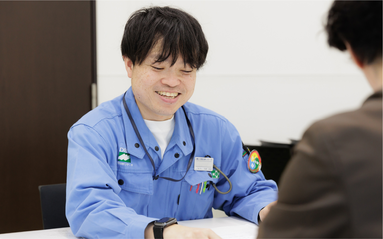当社は、大同特殊鋼株式会社の特殊鋼製造工場における環境の調査や分析の多くを任されています。環境トラブル時には、どのような検査をすれば良いのかを相談されますし、お客様が環境関連法令を遵守できるように常に配慮しています。それらに必要な情報は多岐にわたるので、自分たちの専門性を活かして必要な調査・分析を提案ができた際には、国内外に製品を送り出している世界的な企業で果たせる役割にやりがいや面白さを感じます。「助かったよ」「そういうことか」と言っていただけると嬉しいですね。
